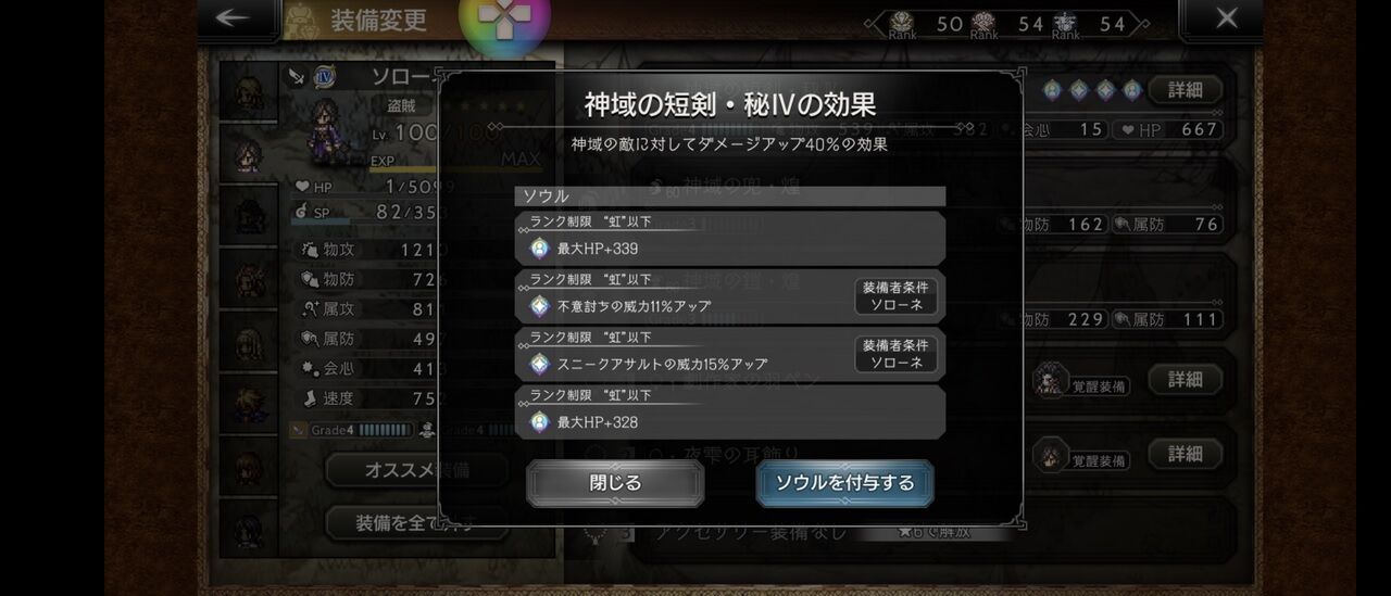 ソローネの残影が溜まったら、スニークラッシュ(12)にして、オディオも4連以上、この時はエリカは練気2溜め